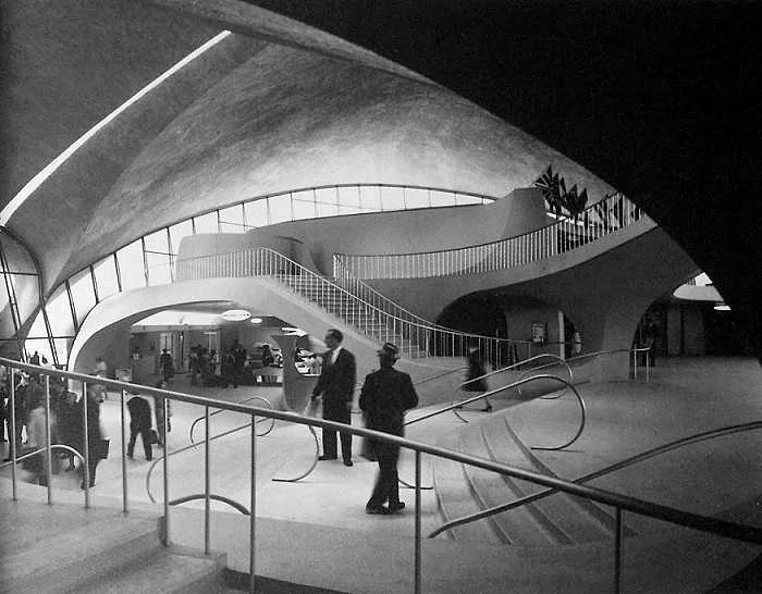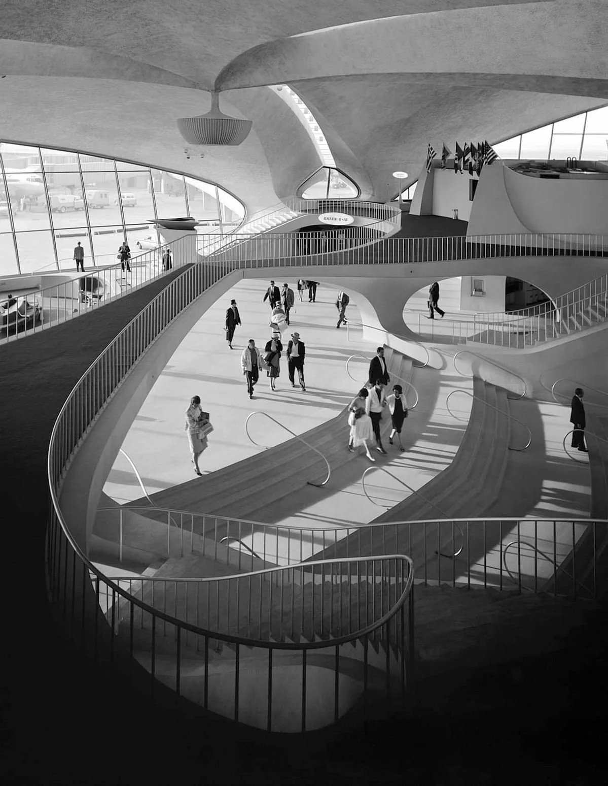 TWA TERMINAL at JFKAirport. Now operating as the TWA Hotel, the location has preserved legendary Finish architect Eero Saarinen’s original 1962 vision and shall serve as a significant cornerstone for the production design as the titular TERMINAL: B. Chosen specifically for its fluid open interiors and midcentury aesthetic, this location serves as a graphic representation of the immediate afterlife where– much like in airport terminals– confused travelers attempt to make sense of where to go next.
